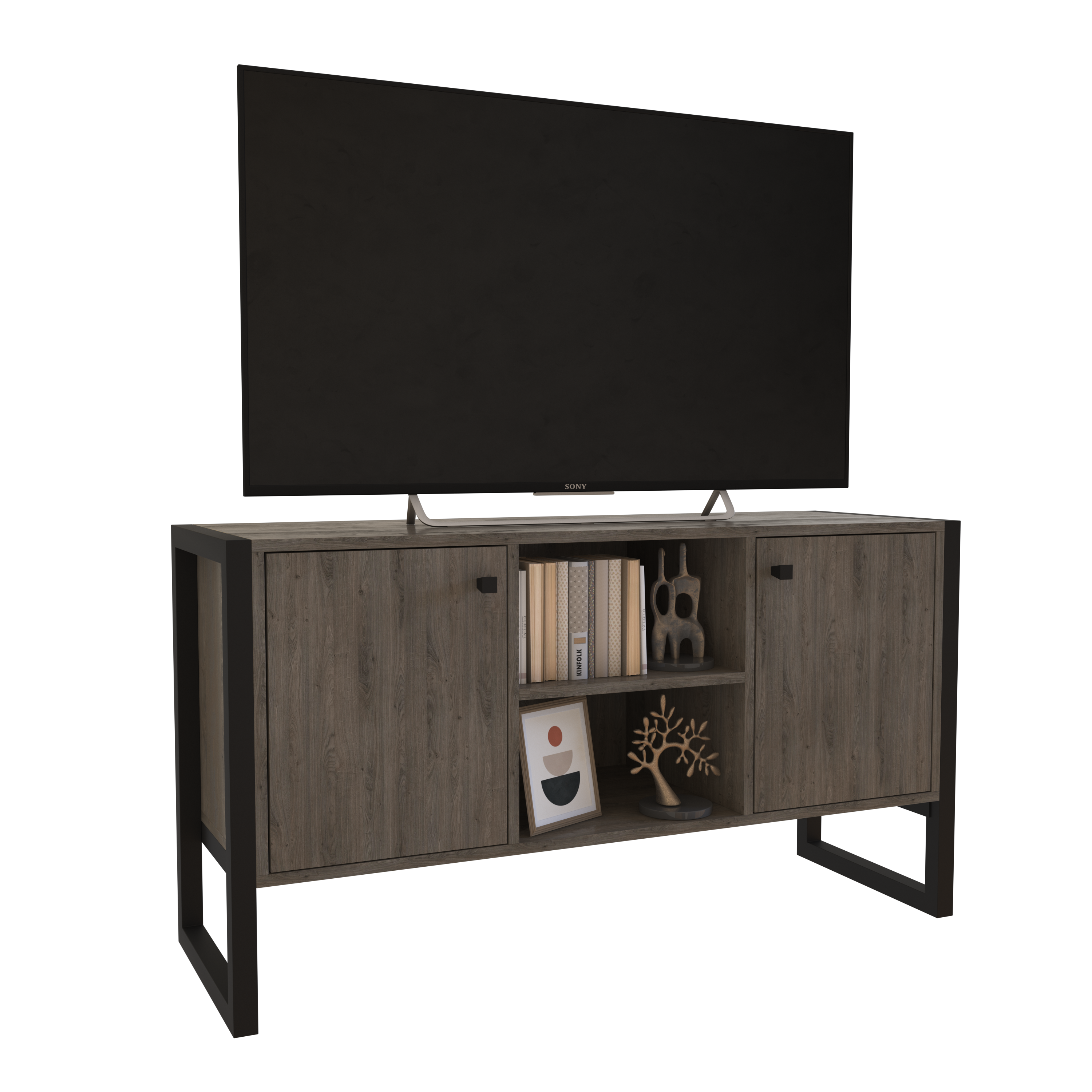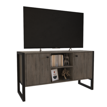 Dale un toque elegante y organizado a tu espacio de entretenimiento con nuestro rack steel para tv de Delos. Con estructura de hierro mate de 1,2cm y cuadro de 3x3cm, es resistente y soporta tu TV de 42″ y dispositivos de entretenimiento. Además, cuenta con 2 puertas que ocultan tus accesorios y objetos personales, y estantes para guardar y mostrar tus objetos favoritos. La melamina de 15mm es duradera y fácil de limpiar, mientras que su diseño sofisticado complementa cualquier decoración.